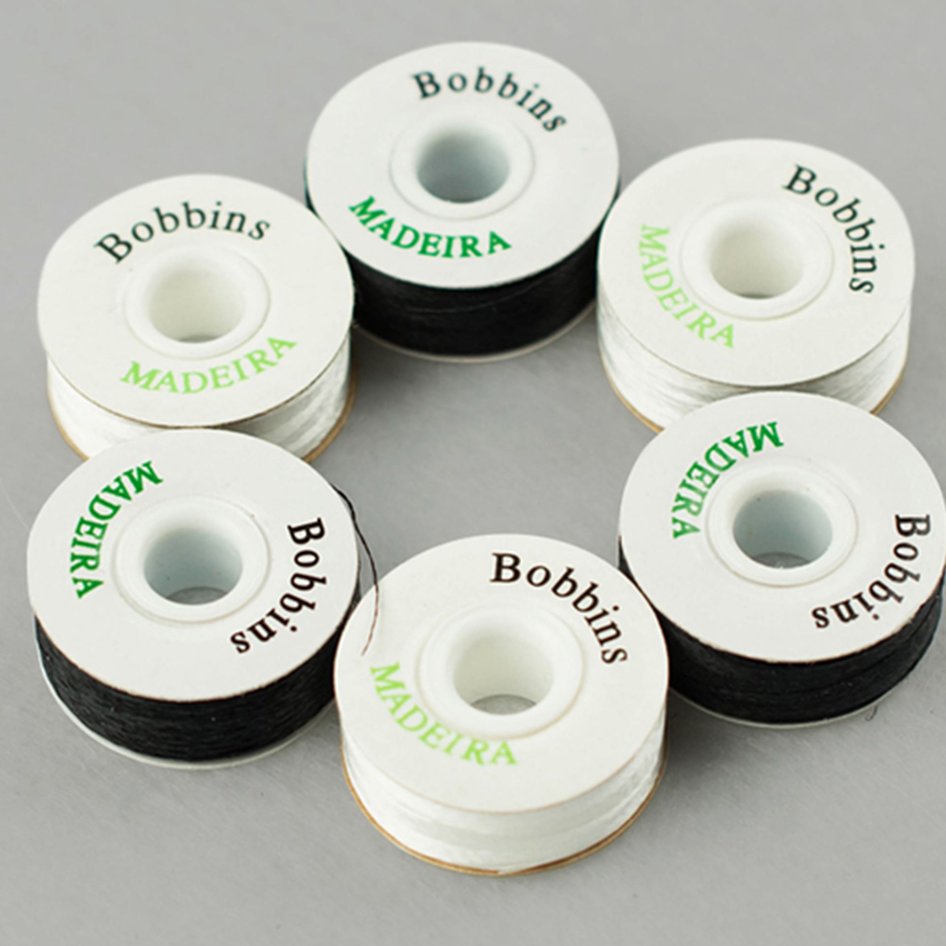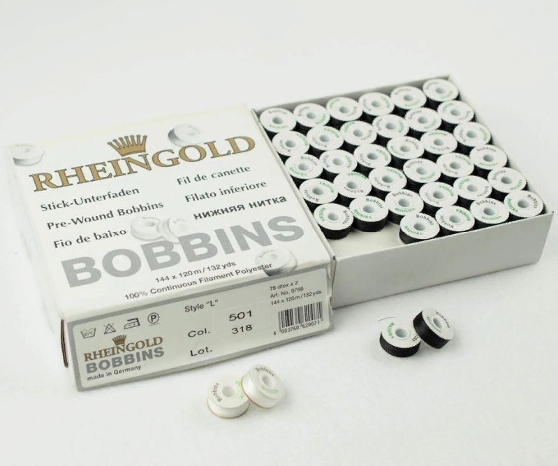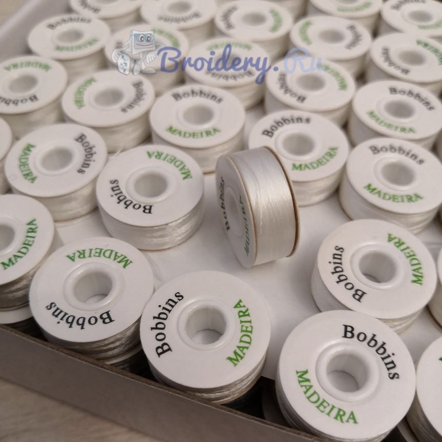 Нижняя нить марки RHEINGOLD(Madeira) Bobbins c картонными шайбами, больше не нужно наматывать шпульки с бобин! Заранее намотанные шпульки практичны, всегда готовы к использованию, с одинаковым натяжением и одинаковой длиной нити.