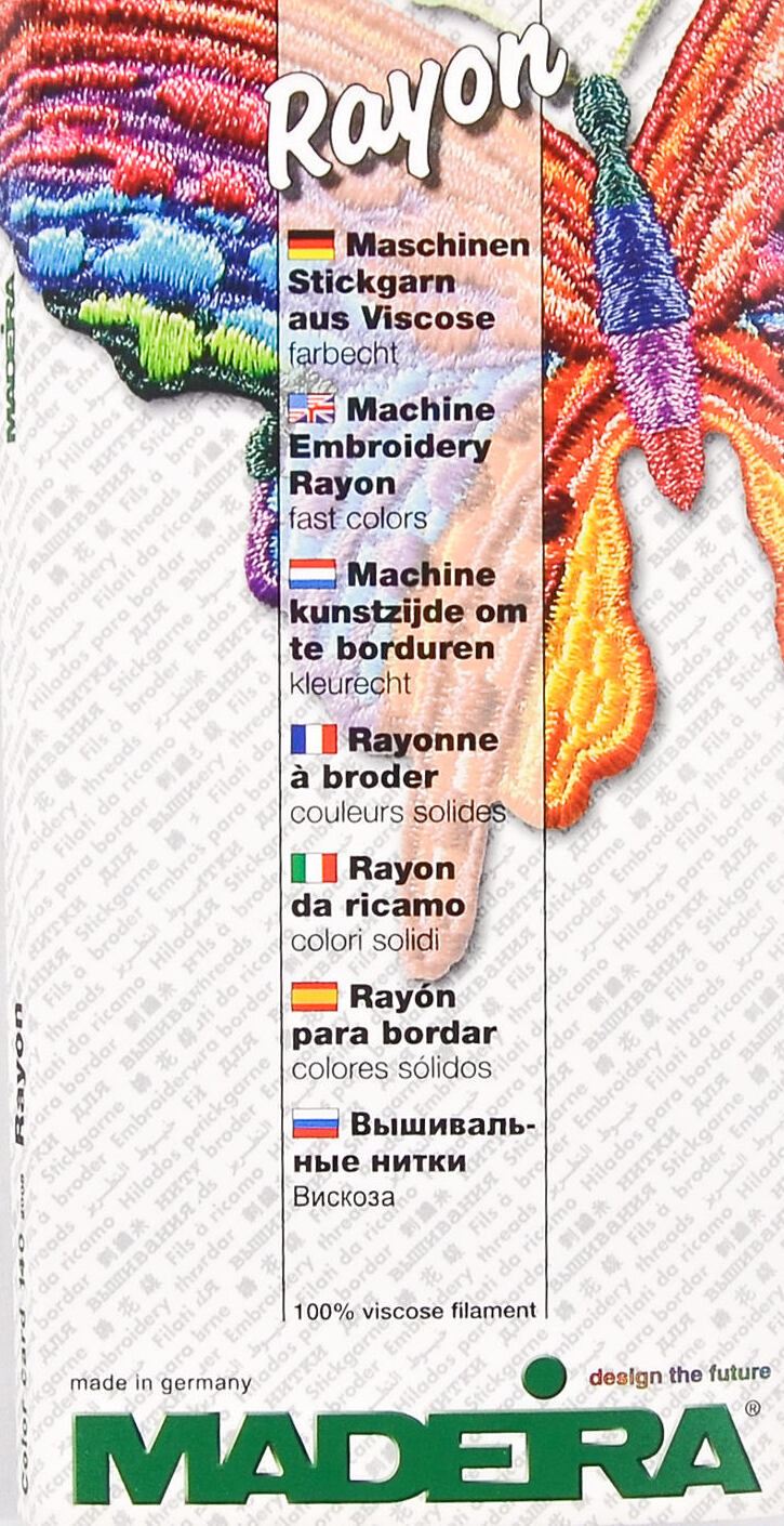 RAYON представляет собой идеальную нить для машинной компьютерной вышивки и вышивальных методов. Применять её можно без каких-либо ограничений для вышивки на тончайшем шёлке, либо на грубой джинсовой ткани или коже.