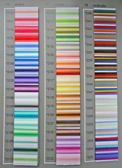 В палитре представлено 55 цветов толщиной №40. Нитки, которые окрашены с помощью сложной химической технологии.