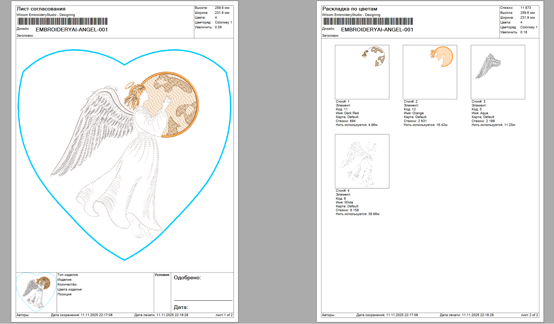"Ангел" дизайн машинной вышивки