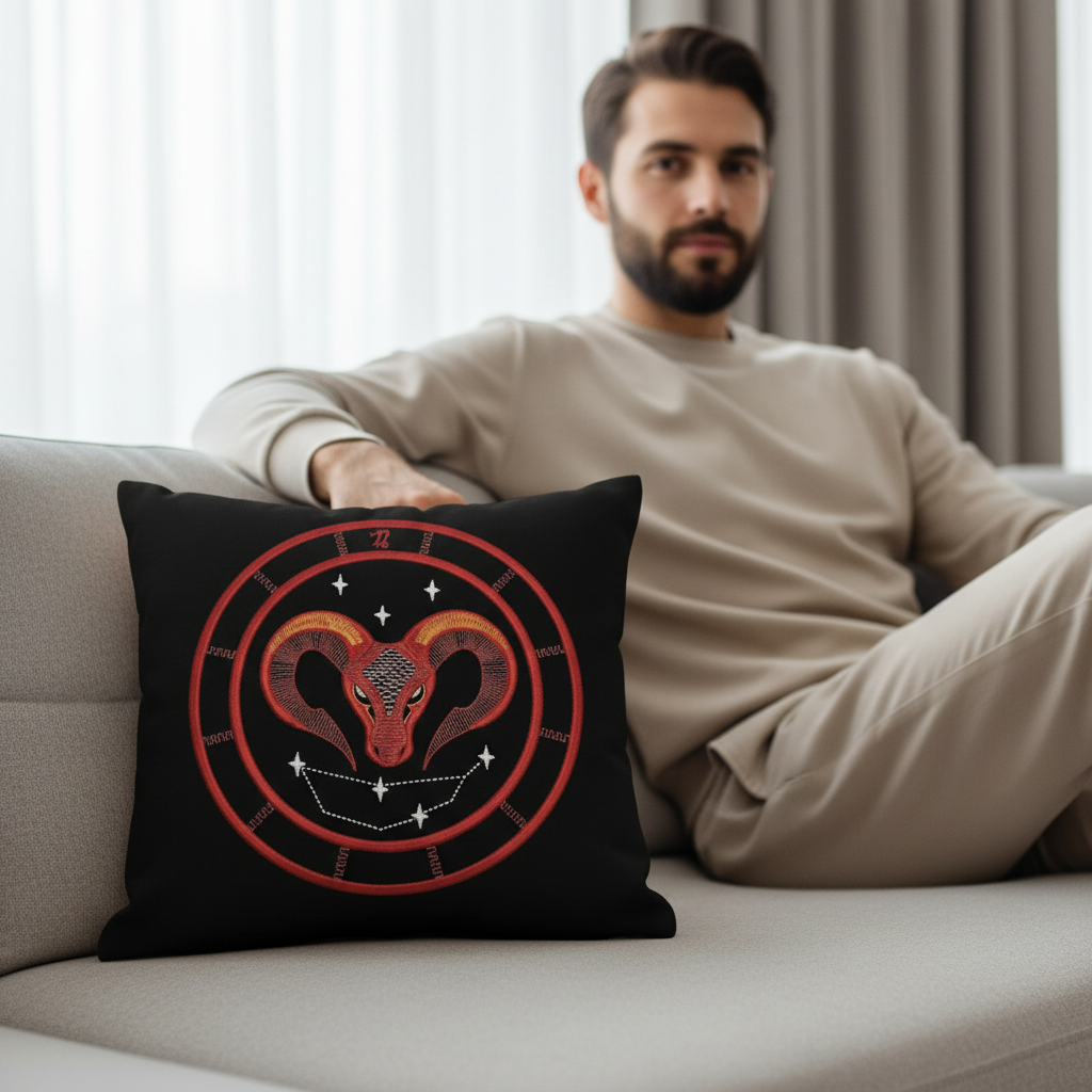 размер 200×200 мм, как и у остальных в серии «Знаки Зодиака», а 16 514 стежков выстроены так ровно, что каждый держит строй и форму.