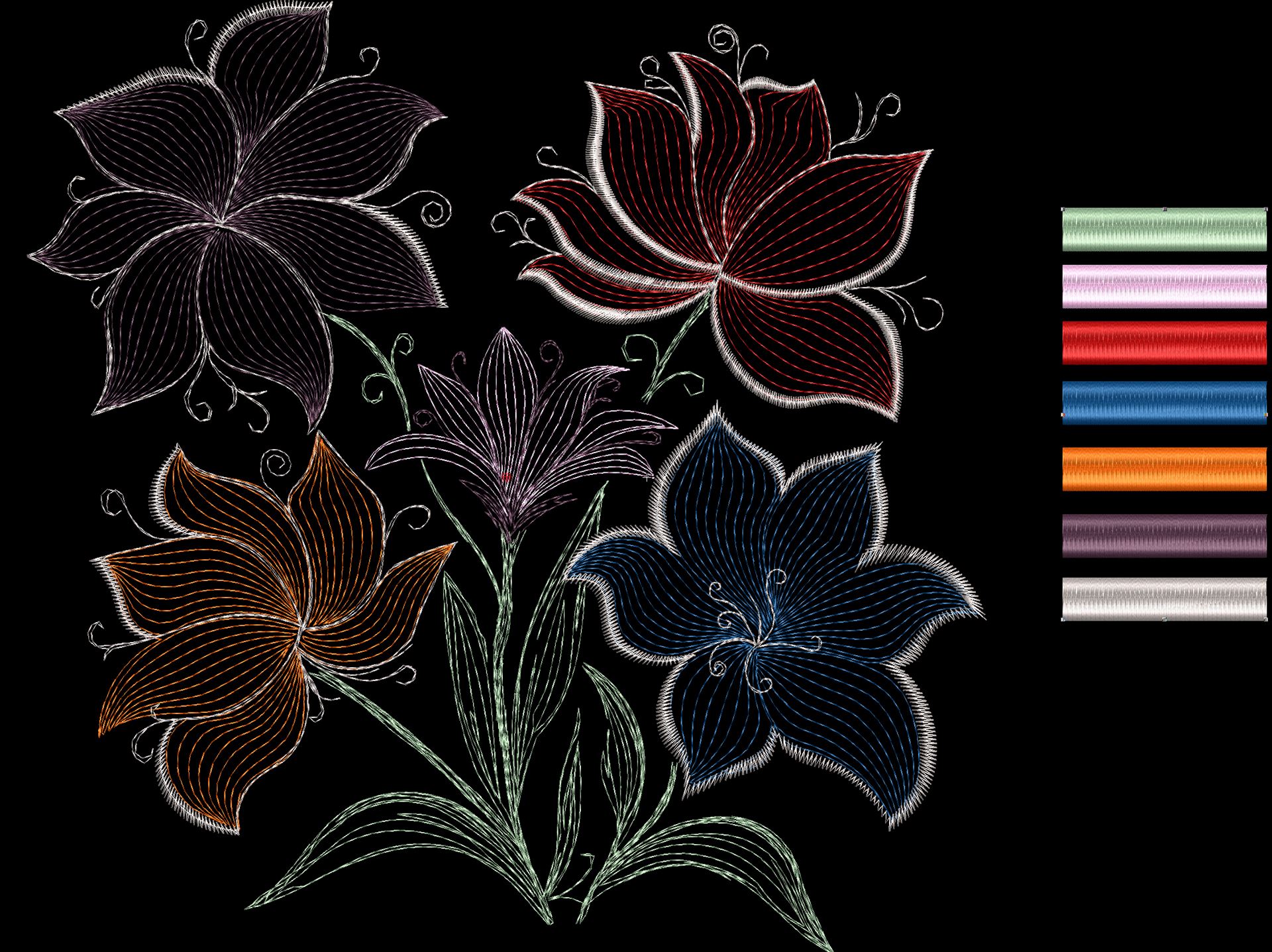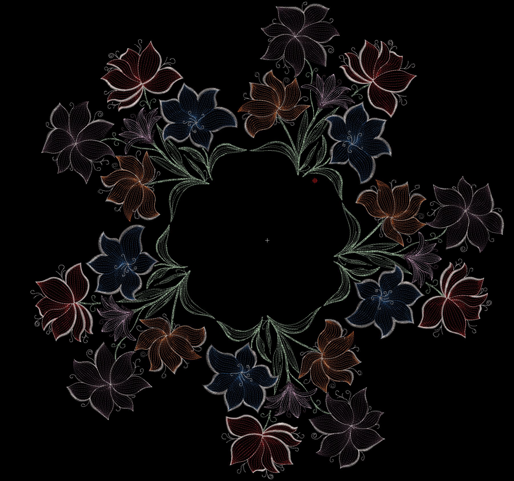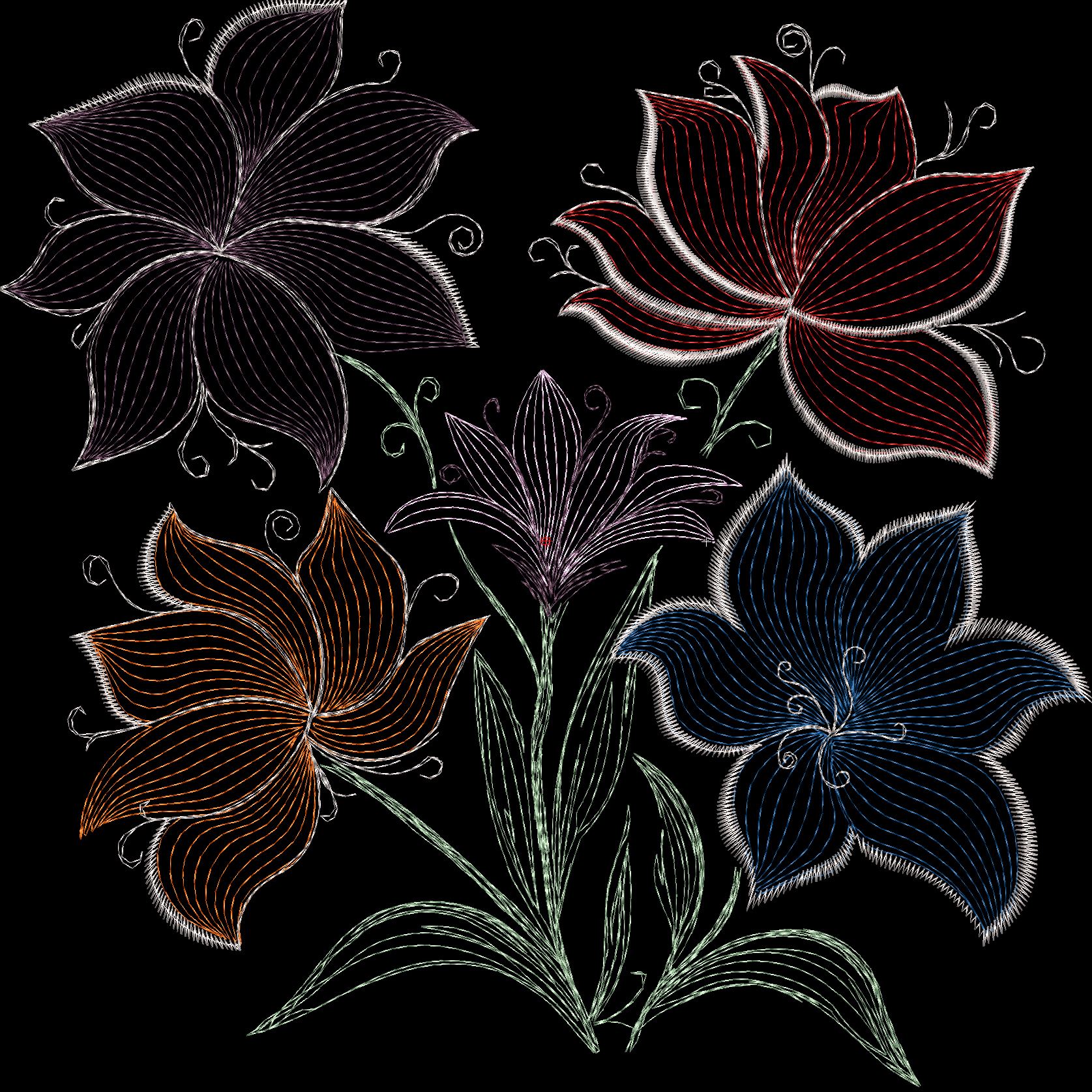 ✨Элегантный дизайн в виде букета из пяти цветов выполнен с тонкой детализацией. Заполнение лепестков создано редкими строчками, что обеспечивает деликатную проработку деталей и придает композиции воздушность и легкость. Благодаря продуманной композиции несколько таких мотивов можно объединить в круговую вышивку, создавая изысканный венок - идеальное украшение для центра скатерти.