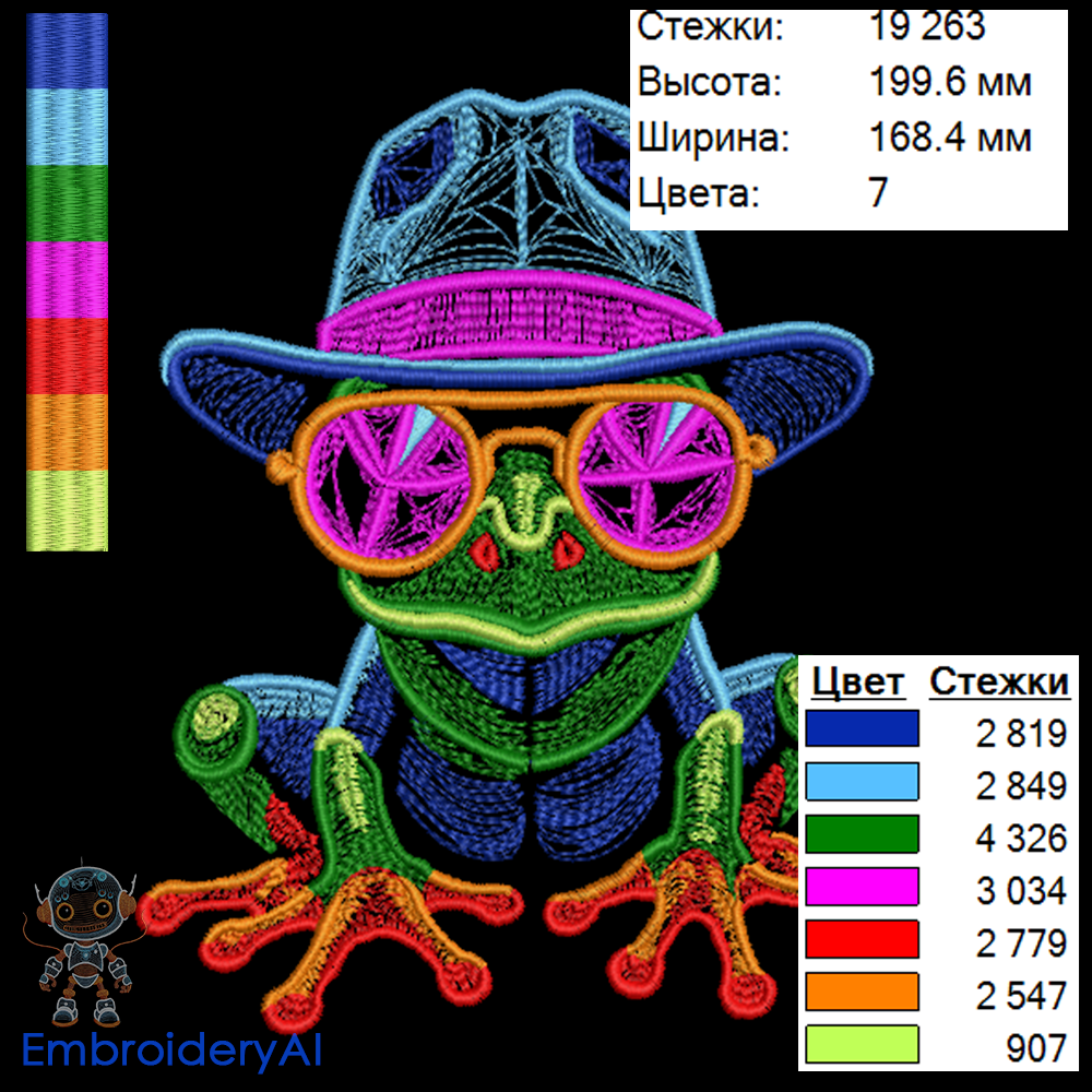 Хочешь, чтобы твой образ всегда был на высоте? Представляем дизайн вышивки с самой модной лягушкой в округе — в шляпе и в крутых очках!