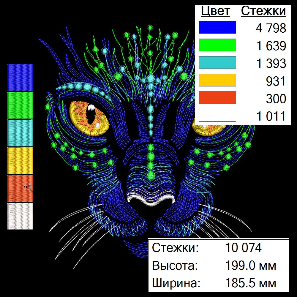 Дизайн доступен во всех популярных форматах (DST, JEF, PES и др.) + исходник в Wilcom 4.2. Стежковый дизайн.