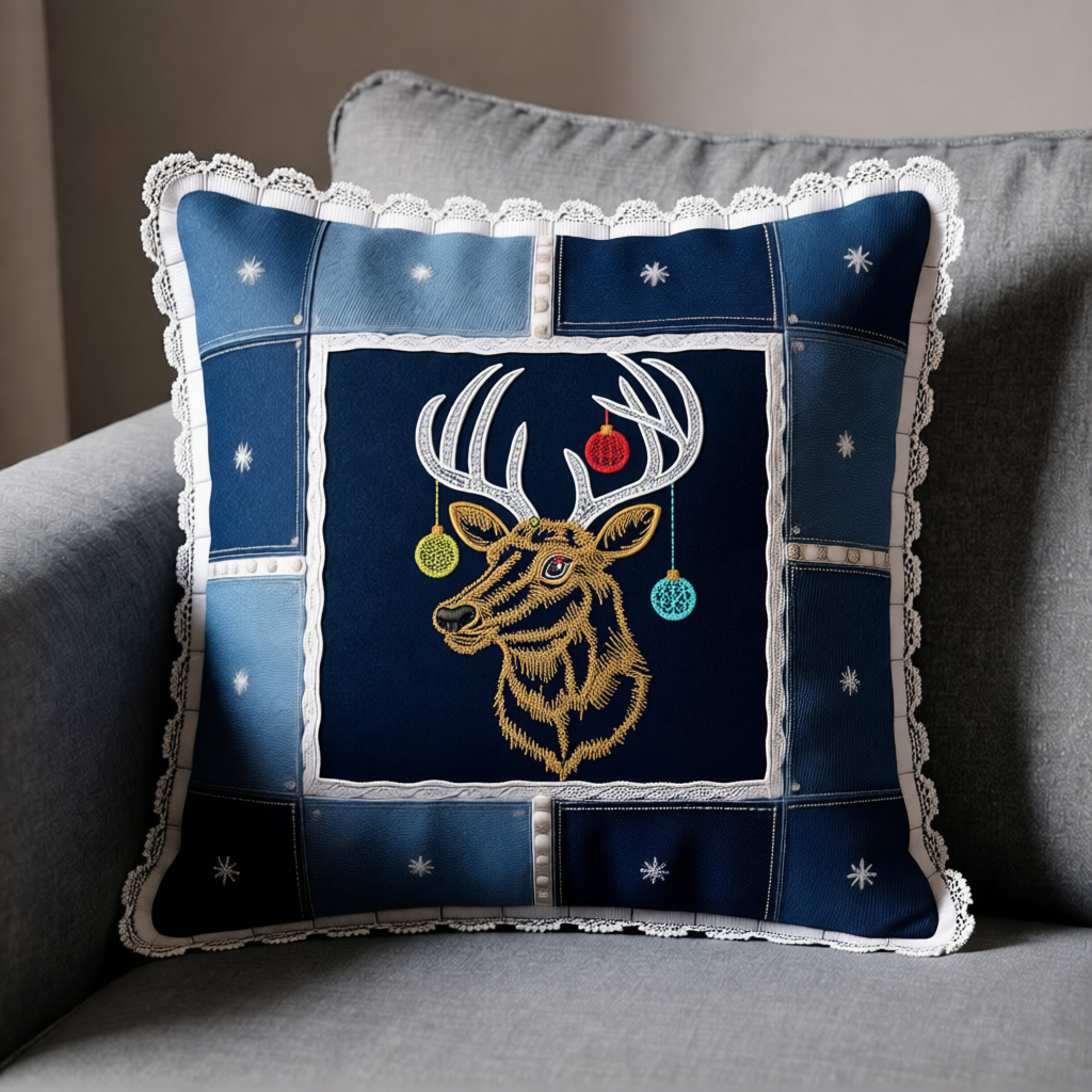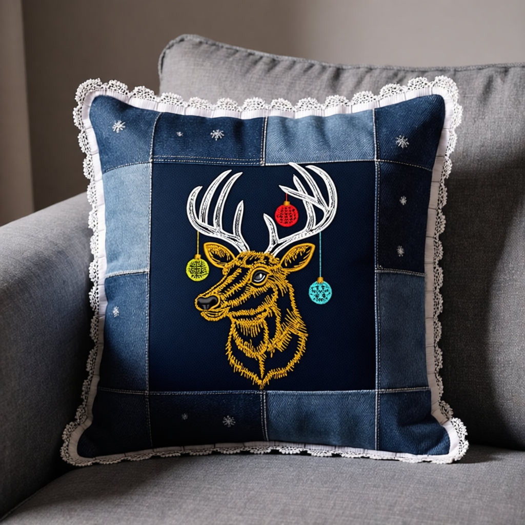 Размер выбран небольшим – чтобы уютно разместить Оленя по центру подушки из джинсовых или других лоскутков. Осталось добавить тесьму, кружева, всевозможные комбинации тканей – и готов настоящий декоративный текстильный шедевр! 🪡💫