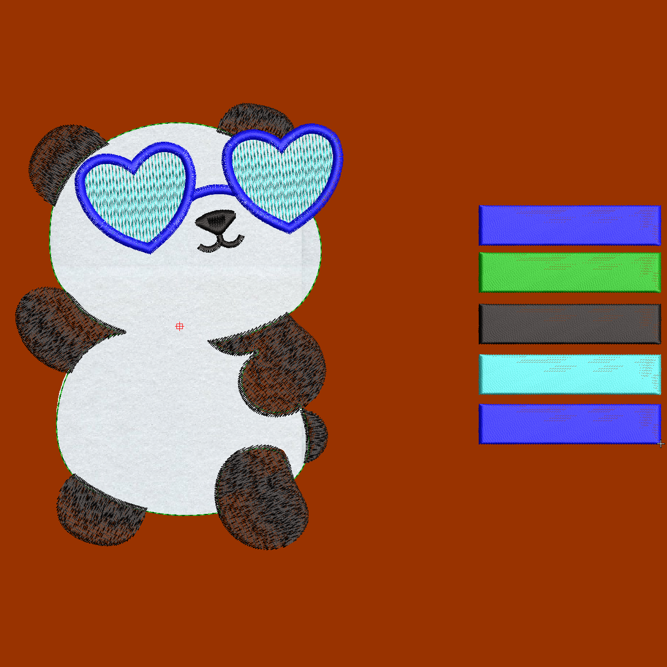 6️⃣ Заправьте светло-голубую нить и вышейте 4 цвет (очки-сердечки)