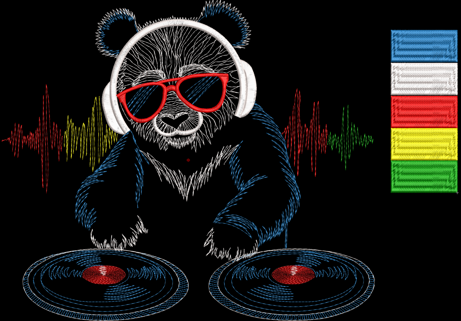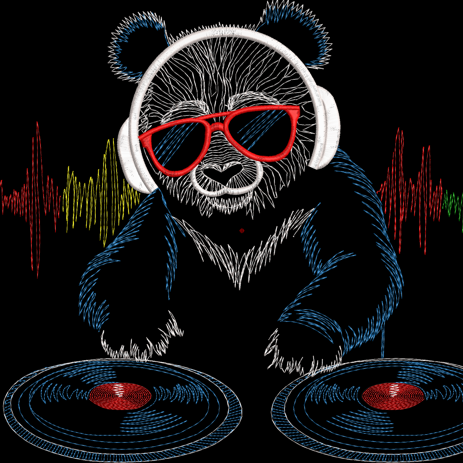 😎 Эта стильная машинная вышивка передает всю харизму диджея-энтузиаста: крутые очки, мощные биты и легкое стежковое заполнение, которое заставляет нитки «играть» не хуже пластинок! Готовы к музыкальному бамбусту? Тогда включаем на полную и качаем вместе с этим косолапым звукорежиссёром! 🔥🐾🎵