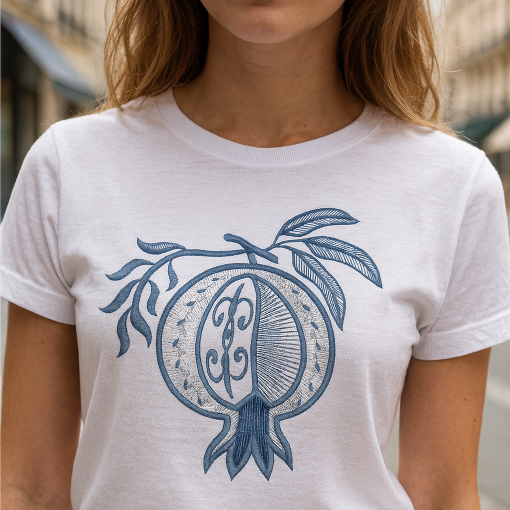 Восточная роскошь в классической гжели! Сочный гранат с тонкой прорисовкой — новое дополнение к нашей фруктовой коллекции.