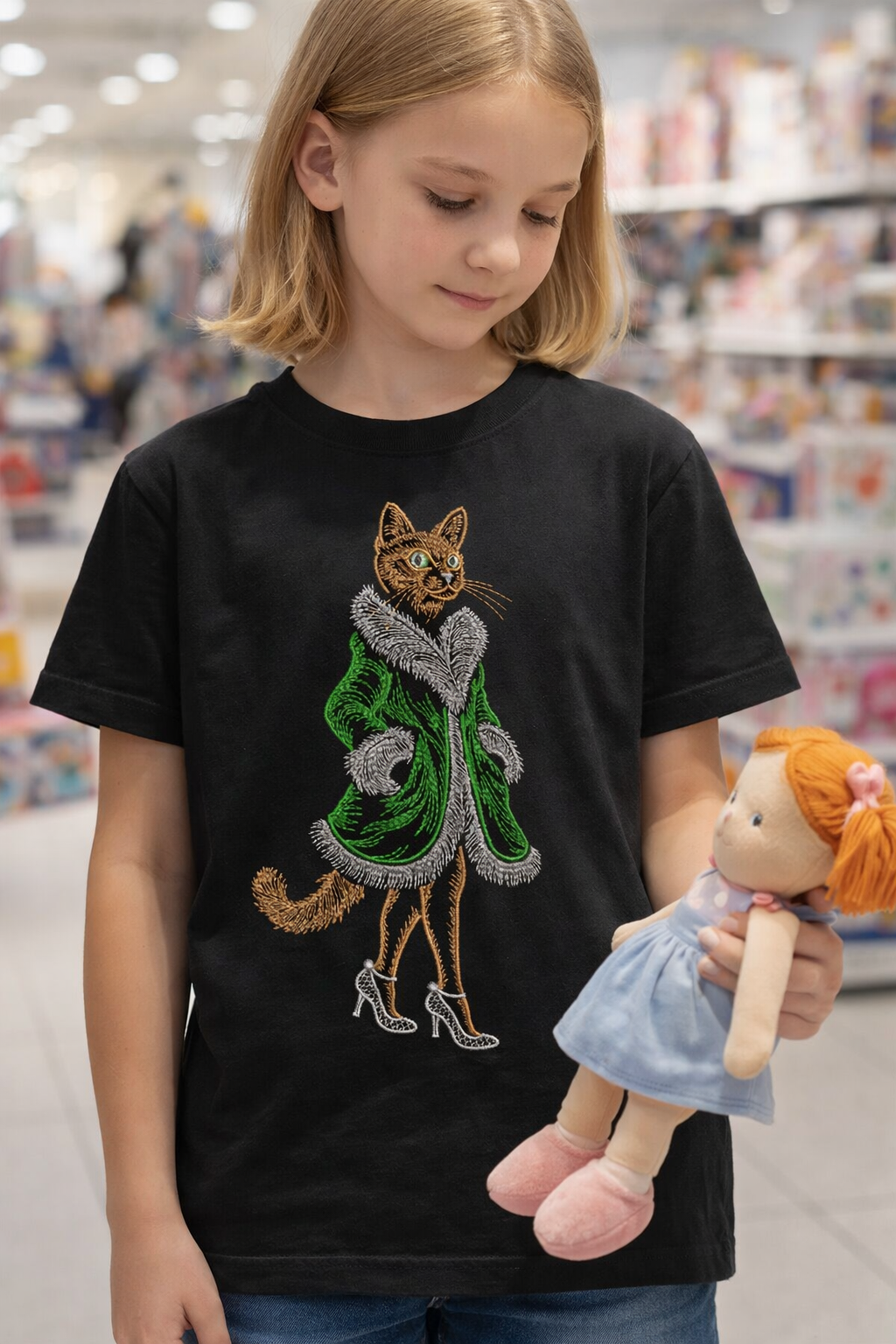 238×123 мм, 14 285 стежков, 5 цветов – мех блестит, усы при деле, кружевные туфельки на высоте 👠