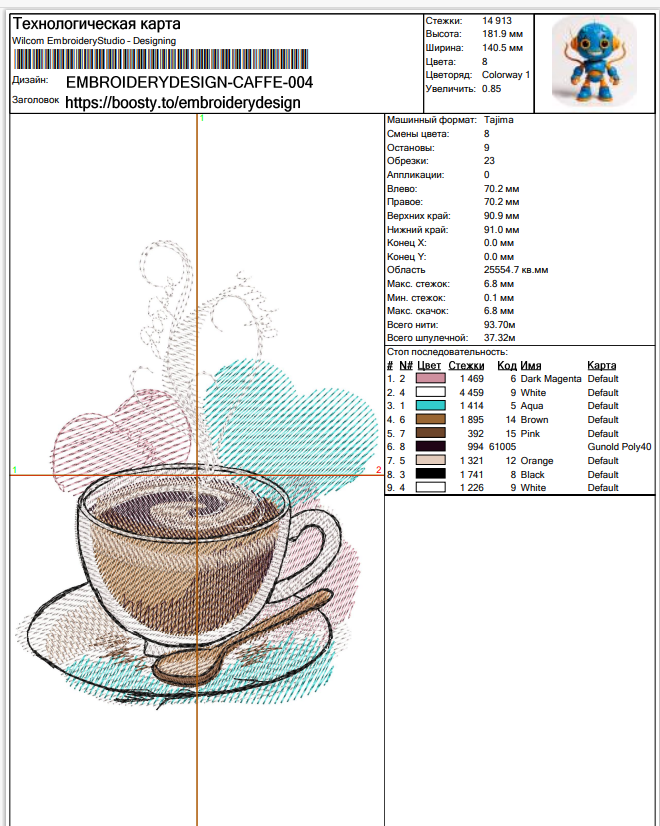 📐 Техподробности – 182×141 мм, 14 913 стежков, 8 цветов – чтобы утро было ярким!