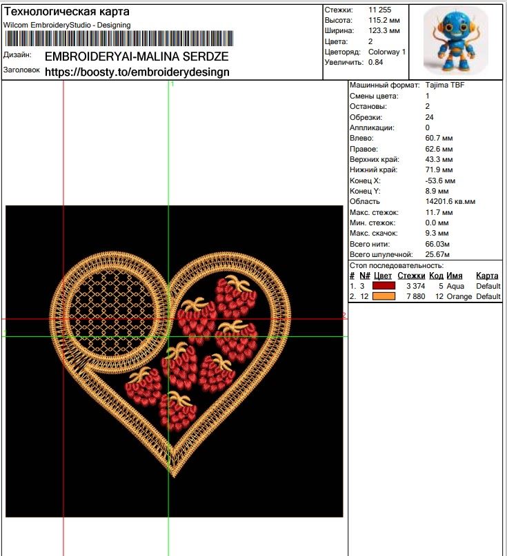 Размер: 115×123 мм – изящно переплелись сердце и малина.